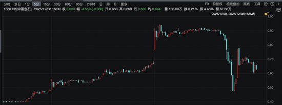 12月8日,中国金石经历一日“惊魂过山车”后,最终收跌5.97%。早盘,该股一度涨超40%,午后掉头向下,一度跌逾28%。下午收盘,该股报收于0.63港元/股,收跌5.97%。
