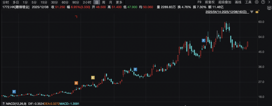 12月8日,港股锂电池概念股拉升。其中,赣锋锂业尾盘拉升,收涨6.95%,天齐锂业收涨3.16%,洪桥集团收涨3.23%,宁德时代收涨3.28%,比亚迪股份收涨0.15%。