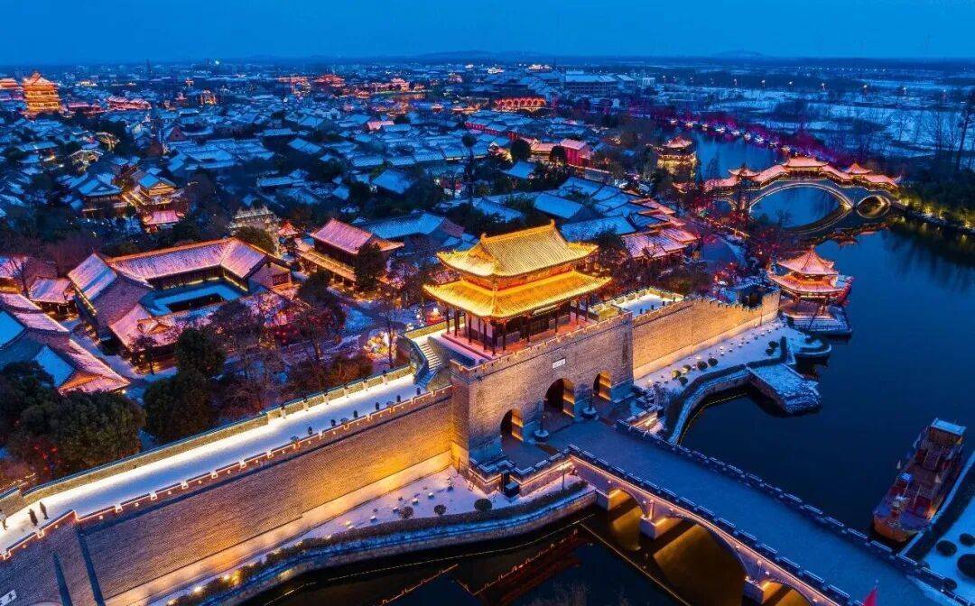 初雪轻落,台儿庄古城正等待与你相逢,共度一段静谧而浪漫的时光。