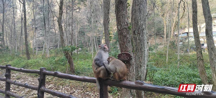 虽值寒冬,公园内林木仍见葱郁,游客们赏景、闲谈间,与猕猴的“偶遇”更让旅程添了惊喜,轻松氛围裹着暖意,成为张家界冬日里的别样风景。